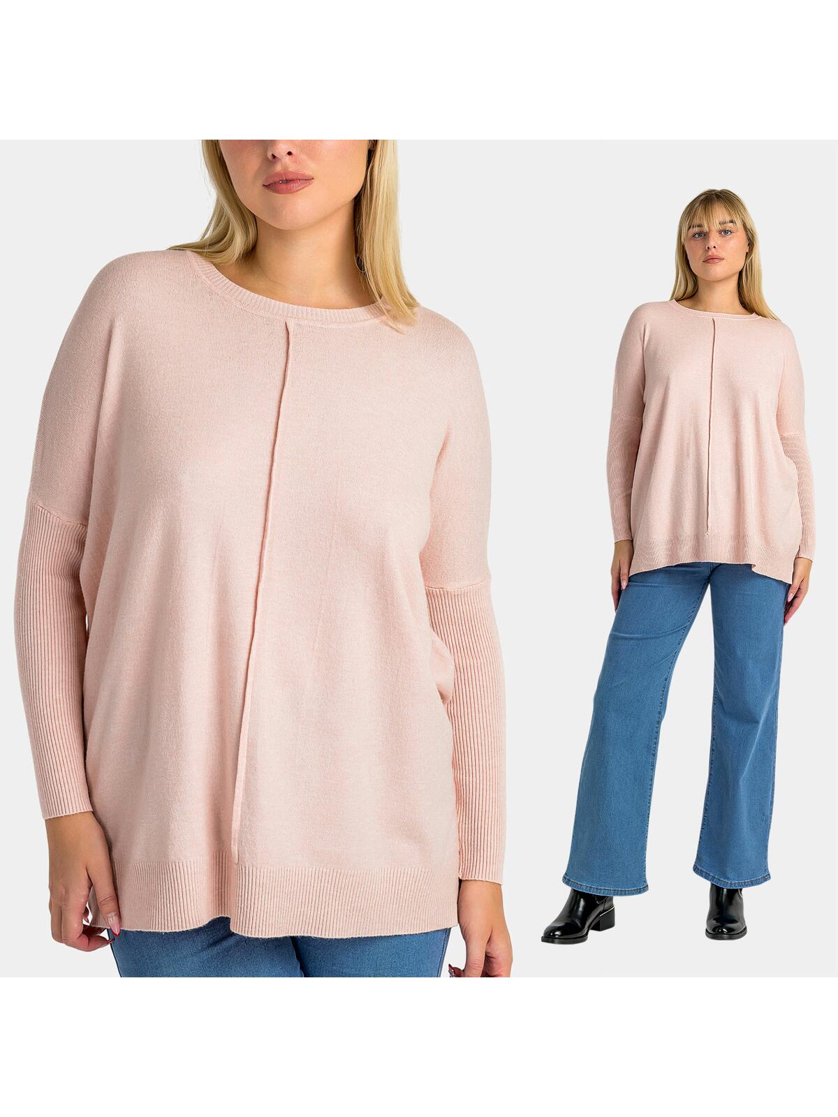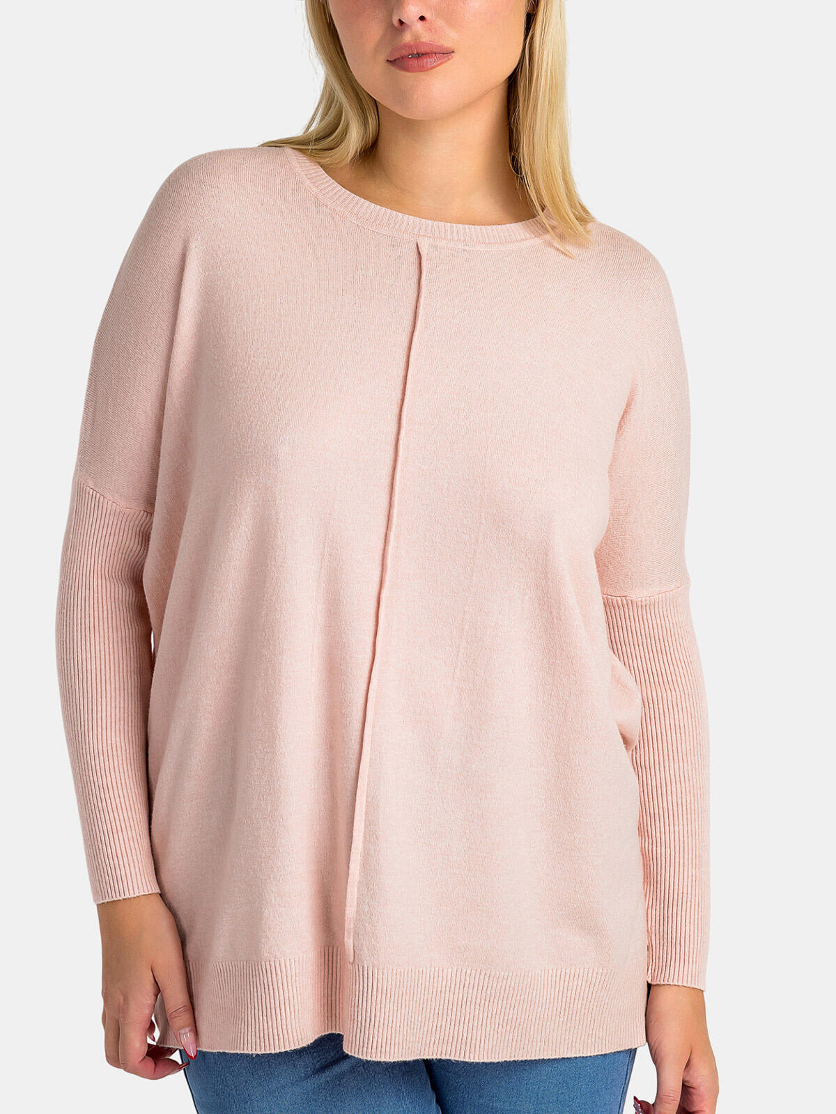O jego ponadczasowym uroku decyduje nie tylko modny, jasnoróżowy kolor, ale także luźny, lekko oversize'owy fason z obniżoną linią ramion, który zapewnia komfort noszenia przez cały dzień. Długie, prążkowane rękawy oraz dekoracyjne przeszycie biegnące pionowo na przodzie swetra nadają mu wyjątkowego charakteru i sprawiają, że staje się on idealnym elementem codziennych stylizacji. 🌸
