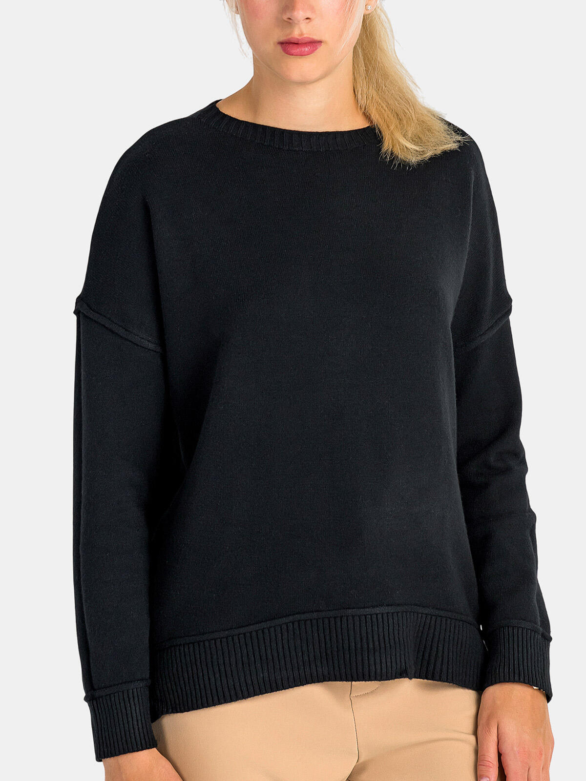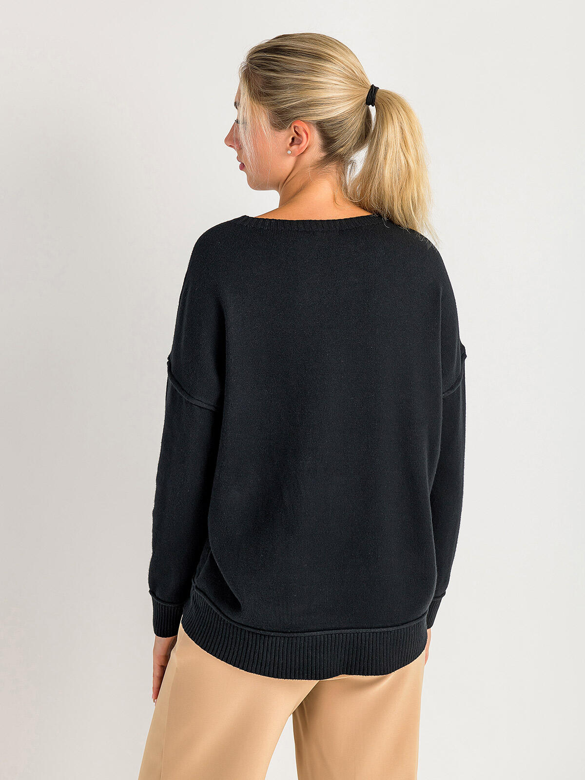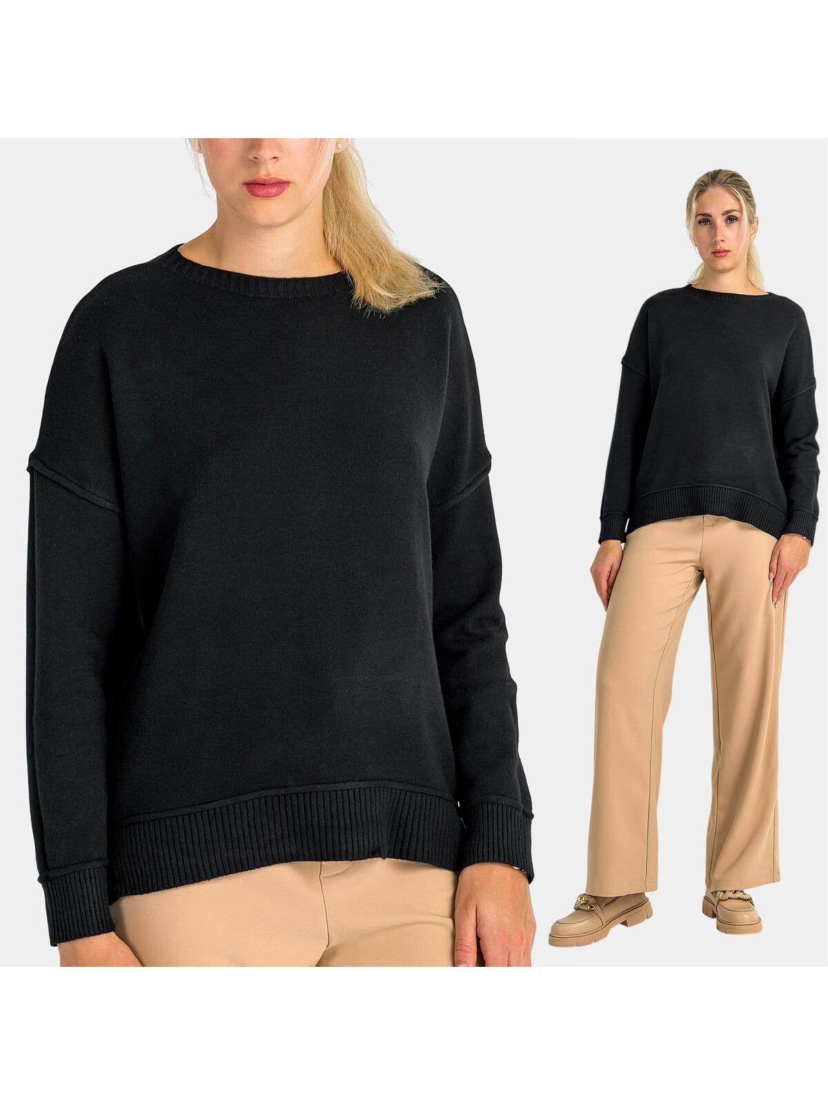 Odkryj niepowtarzalny komfort i styl z naszym eleganckim swetrem z wiskozą w klasycznym czarnym kolorze! 🖤 Dzięki obniżonej linii ramion oraz luźnemu krojowi, idealnie dopasowuje się do każdej sylwetki, gwarantując wygodę przez cały dzień. Długie rękawy zakończone ściągaczami oraz dół swetra w tym samym stylu dodają całości nowoczesnego charakteru. To idealny wybór na chłodniejsze dni, do pracy lub na weekendowe wyjścia! ✨