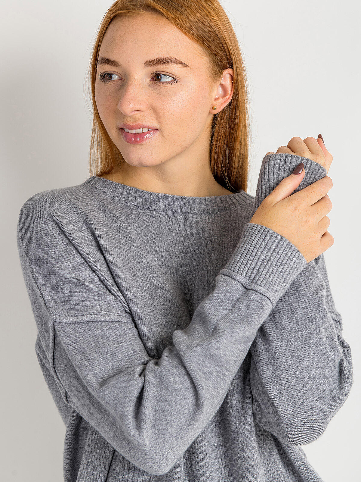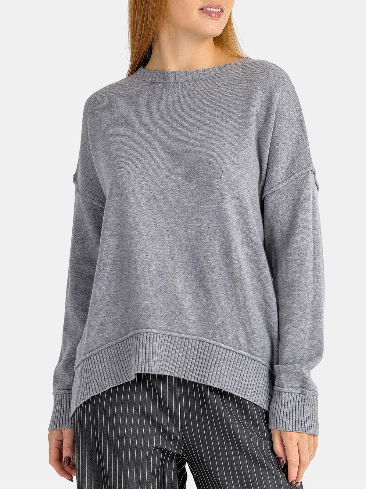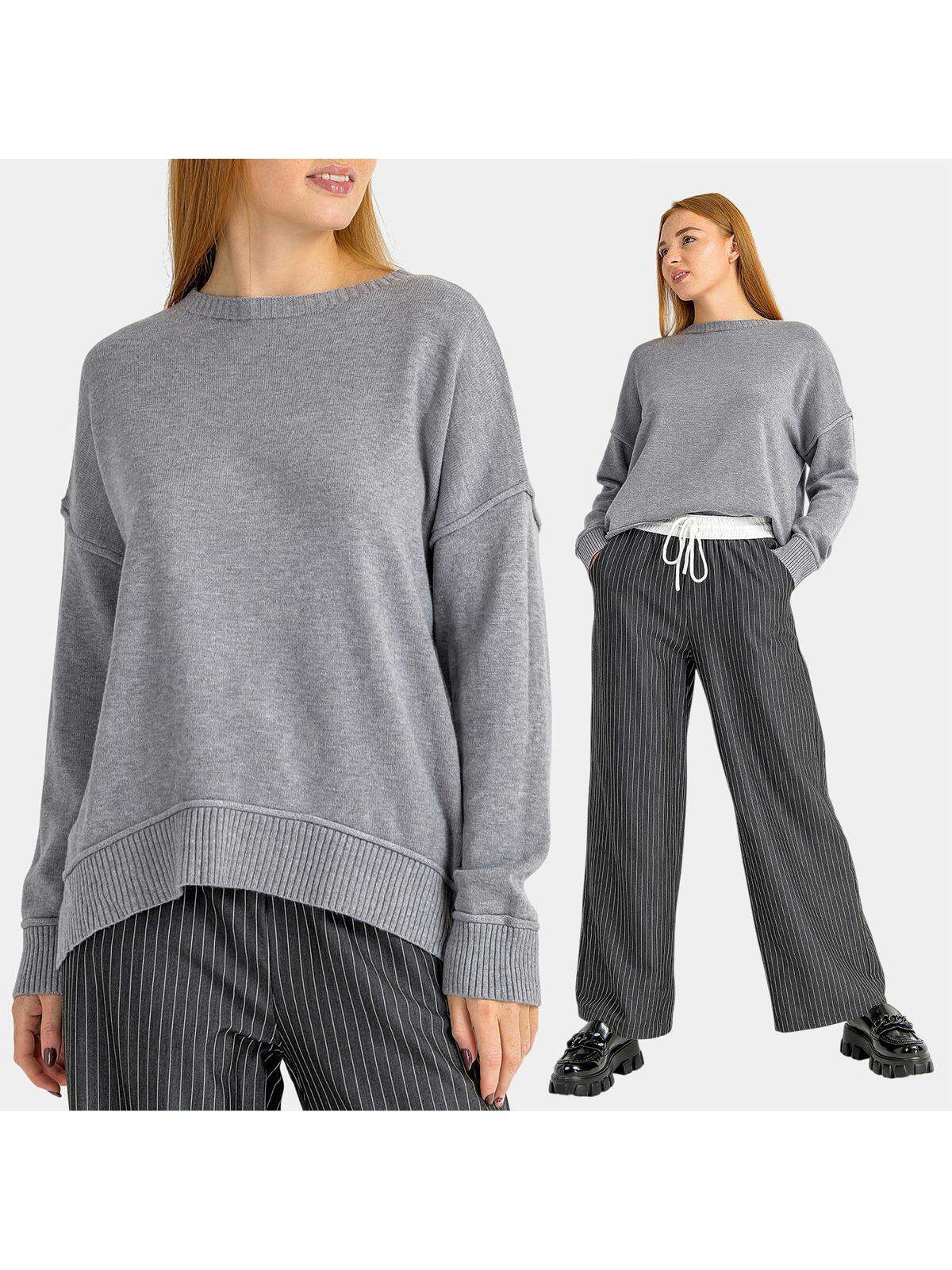 Odkryj elegancję i komfort w jednym! Nasz damski sweter z dodatkiem miękkiej wiskozy to idealny wybór na chłodniejsze dni. Gładki w klasycznym szarym kolorze sprawia, że doskonale komponuje się z każdą stylizacją. 😊 Okrągły dekolt i obniżona linia ramion dodają mu swobodnego charakteru, a lekko dłuższy tył sprawia, że czujesz się w nim swobodnie i stylowo. Prążkowane wykończenie na dole swetra i przy rękawach nadaje mu wyjątkowego uroku. 🌟 Połącz go z ulubionymi dżinsami lub spódnicą, a zachwycisz wszystkich wokół!