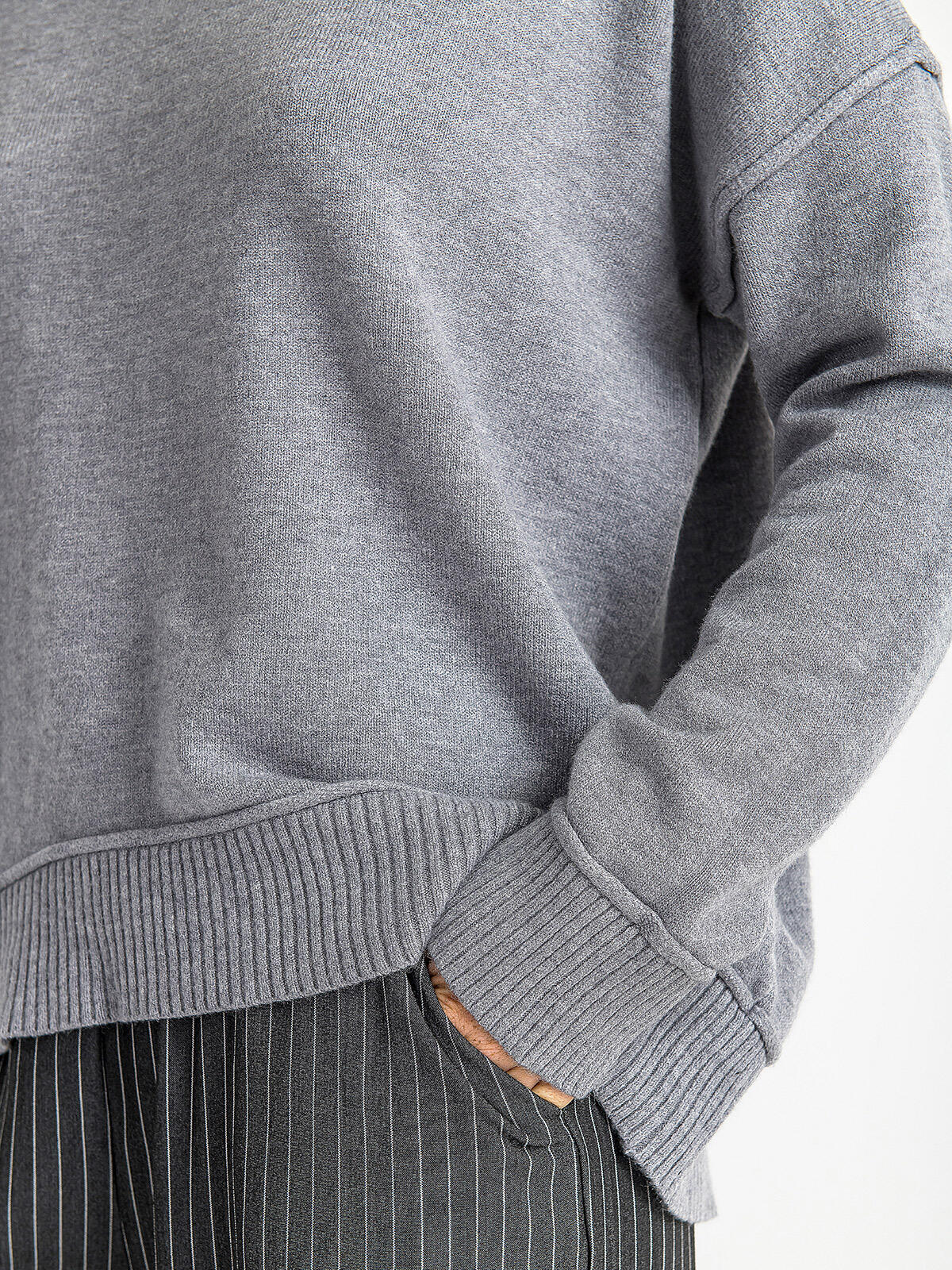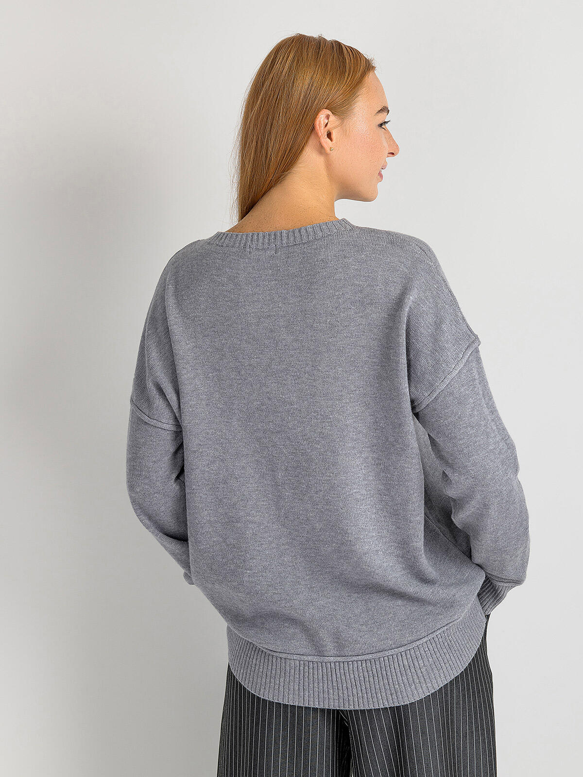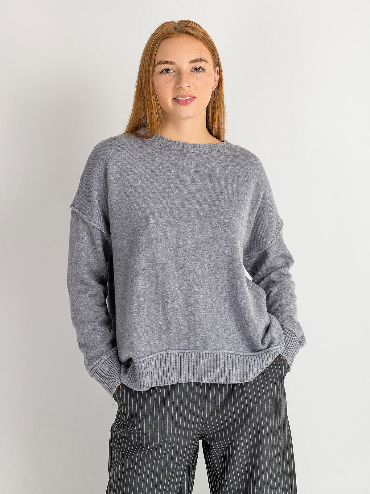 Odkryj elegancję i komfort w jednym! Nasz damski sweter z dodatkiem miękkiej wiskozy to idealny wybór na chłodniejsze dni. Gładki w klasycznym szarym kolorze sprawia, że doskonale komponuje się z każdą stylizacją. 😊 Okrągły dekolt i obniżona linia ramion dodają mu swobodnego charakteru, a lekko dłuższy tył sprawia, że czujesz się w nim swobodnie i stylowo. Prążkowane wykończenie na dole swetra i przy rękawach nadaje mu wyjątkowego uroku. 🌟 Połącz go z ulubionymi dżinsami lub spódnicą, a zachwycisz wszystkich wokół!