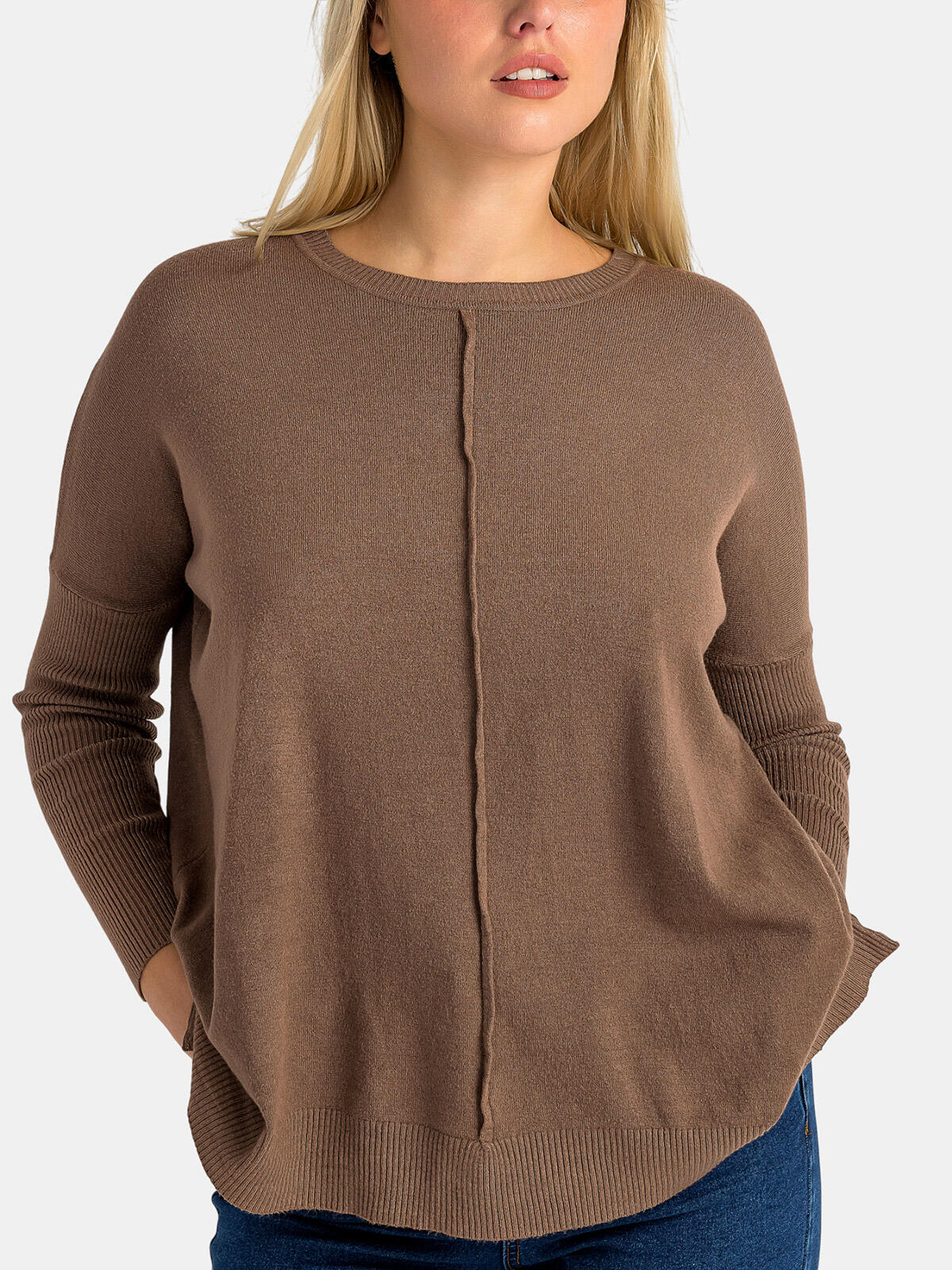 Przygotuj się na chłodniejsze dni z naszym wyjątkowym, brązowym swetrem z domieszką wiskozy! Jego luźny, lekko oversize'owy fason zapewnia maksymalny komfort, a długi prążkowany rękaw nadaje mu stylowy, modny akcent. Ozdobne pionowe przeszycie na przodzie sprawia, że wyróżnisz się z tłumu. Idealnie komponuje się z jeansami, spodniami materiałowymi i spódnicami, dzięki czemu stworzysz niepowtarzalne codzienne stylizacje! ✨