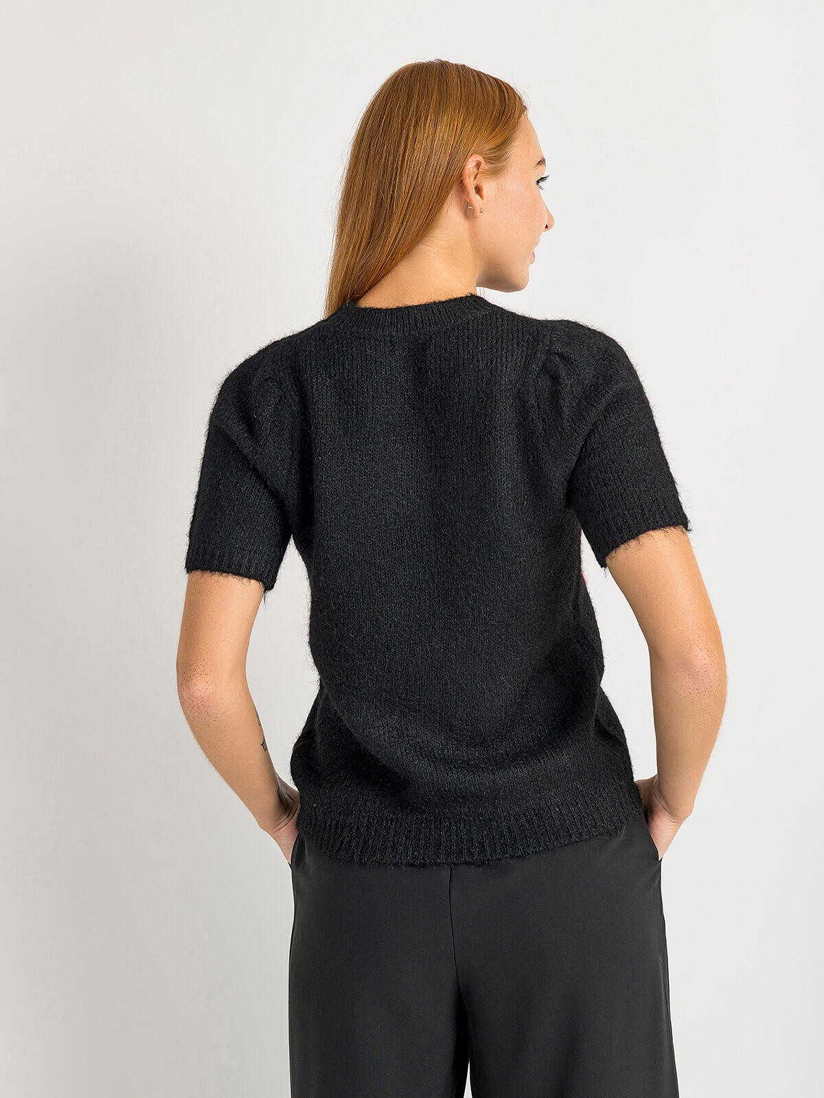 Wybierz czarny kolor, który jest jednocześnie elegancki i wszechstronny, idealny do stylizacji na każdą porę roku! Nie czekaj, dodaj do swojej kolekcji ten niepowtarzalny sweter, który z pewnością przyciągnie spojrzenia! ✨