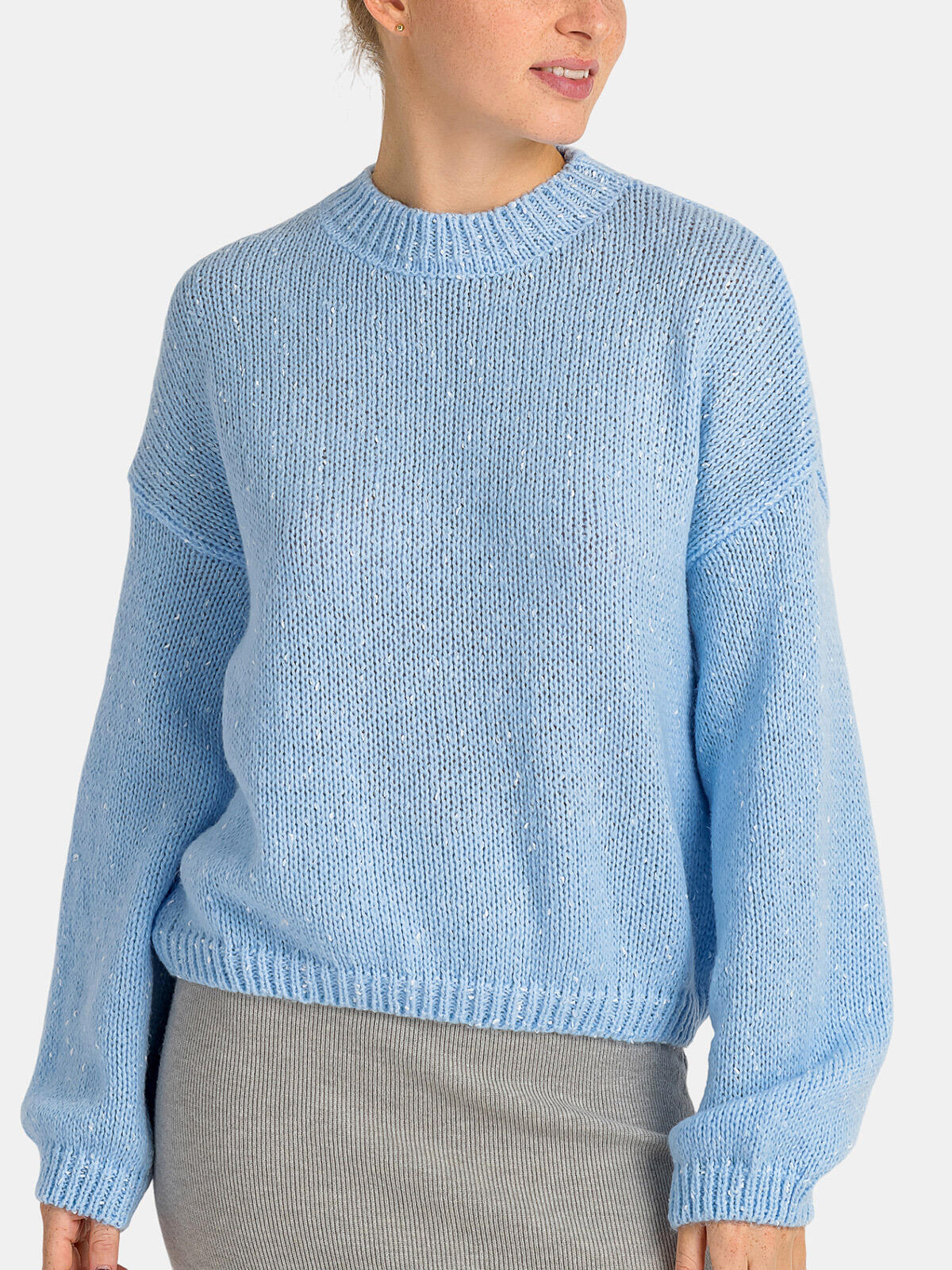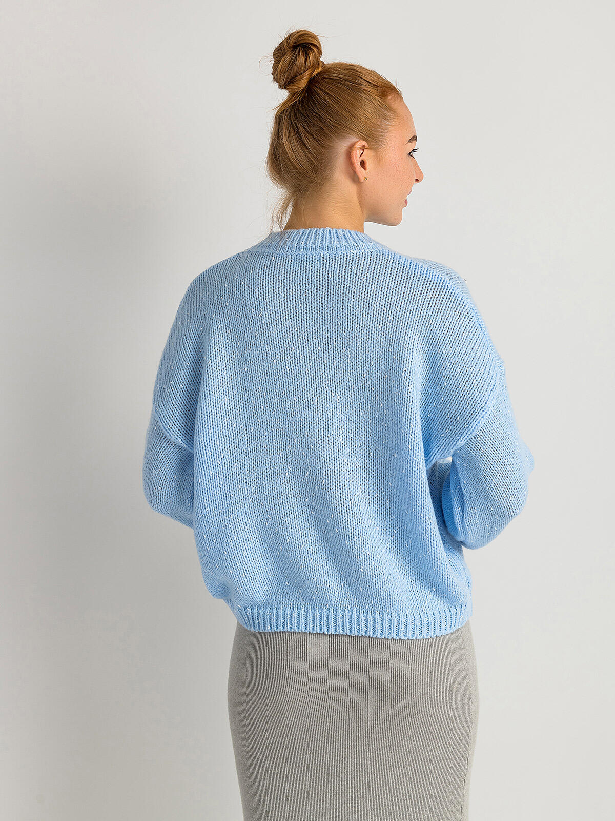 Przygotuj się na wyjątkową przyjemność noszenia z naszym swetrem damskim w kolorze błękitnym! Jego bufiaste rękawy zakończone ściągaczami nadają mu niepowtarzalny charakter, który idealnie sprawdzi się w każdej stylizacji. Luźny krój oraz obniżona linia ramion zapewniają niezwykły komfort, który pokochasz od pierwszego założenia. Ten sweter to idealny wybór do dżinsów, które zawsze pasują do każdej okazji. W dodatku, jasny róż doda Ci uroku i świeżości, a Ty poczujesz się jak gwiazda każdej chwili! 🌈✨