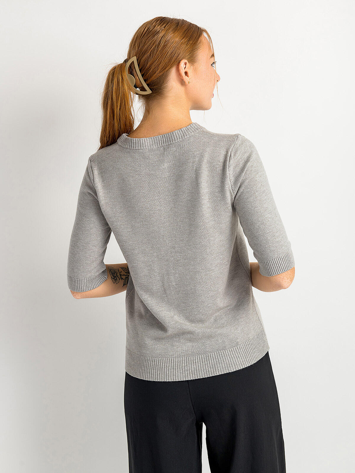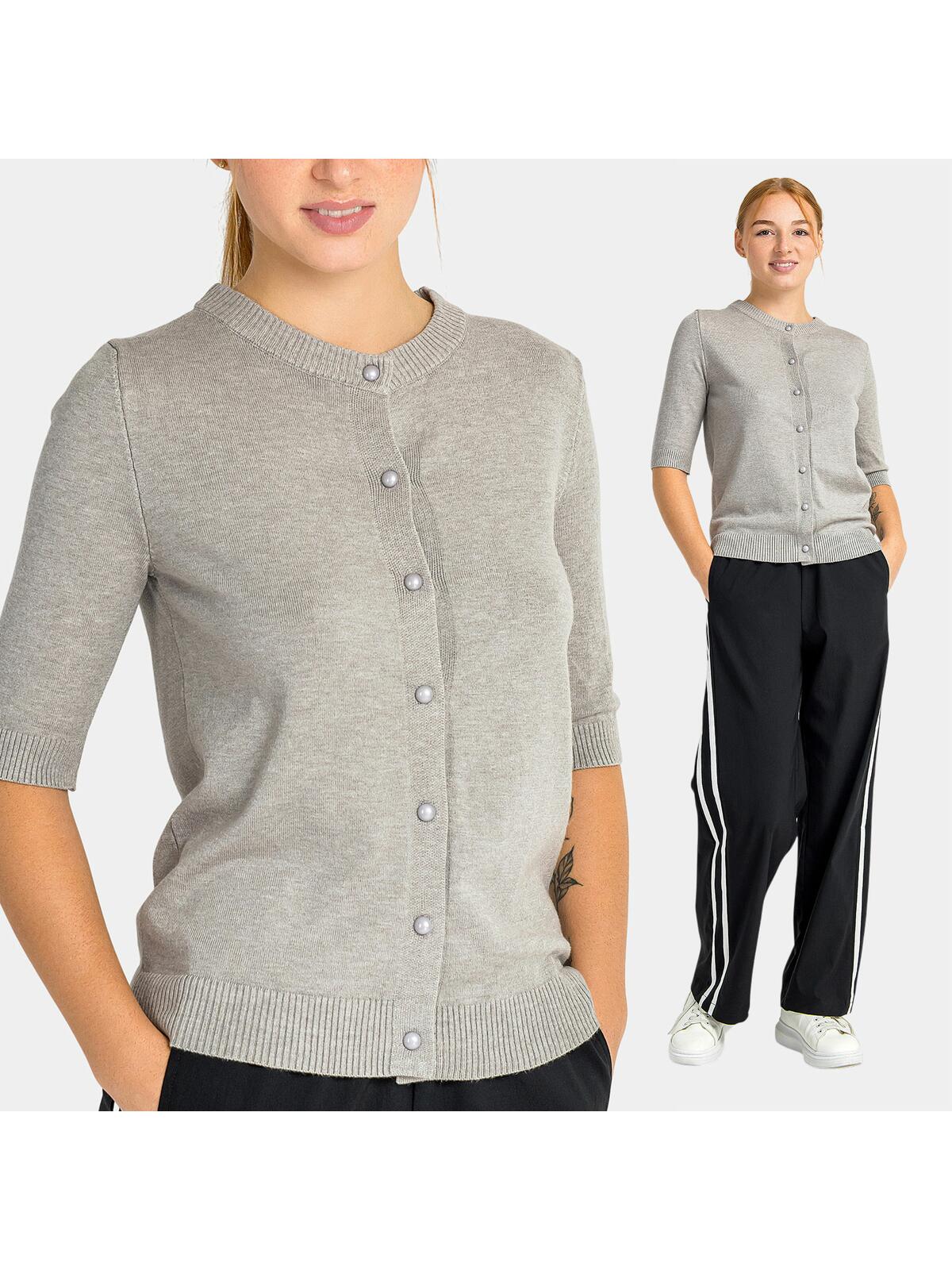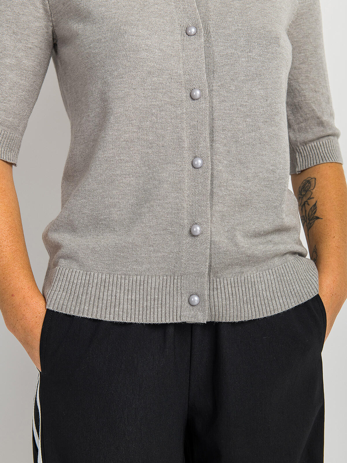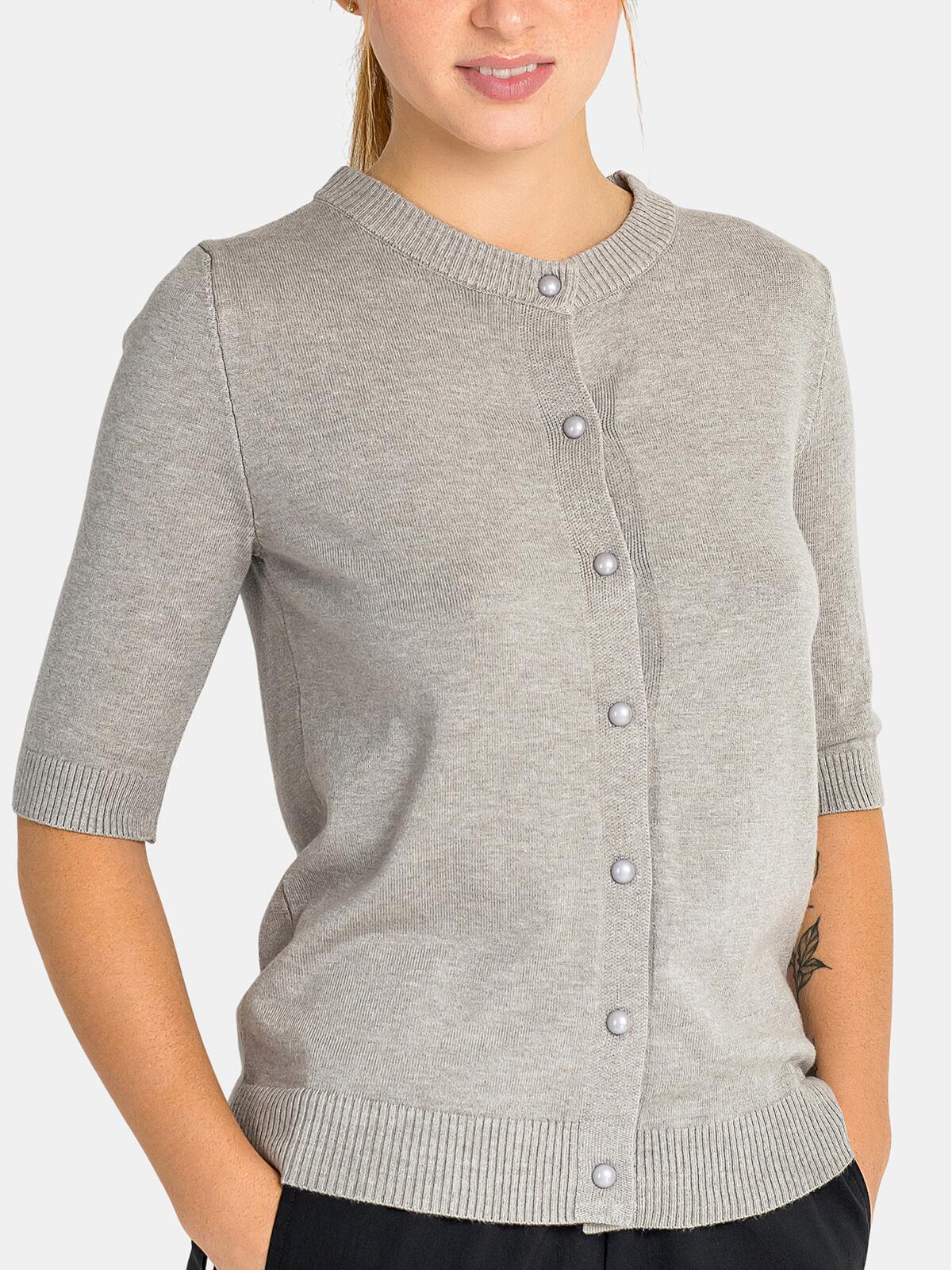Poznaj nasz zachwycający zapinaną sweter w kolorze popielatym, który stanie się niezastąpionym elementem Twojej garderoby! Wykonany z wysokiej jakości materiałów, sweter oferuje wyjątkowy komfort noszenia, łącząc w sobie nowoczesny styl i elegancję. Efektowne guziki w kolorze perłowym dodają mu uroku, a rękawy długości 3/4 sprawiają, że idealnie sprawdzi się zarówno w codziennych, jak i formalnych stylizacjach. 🌈