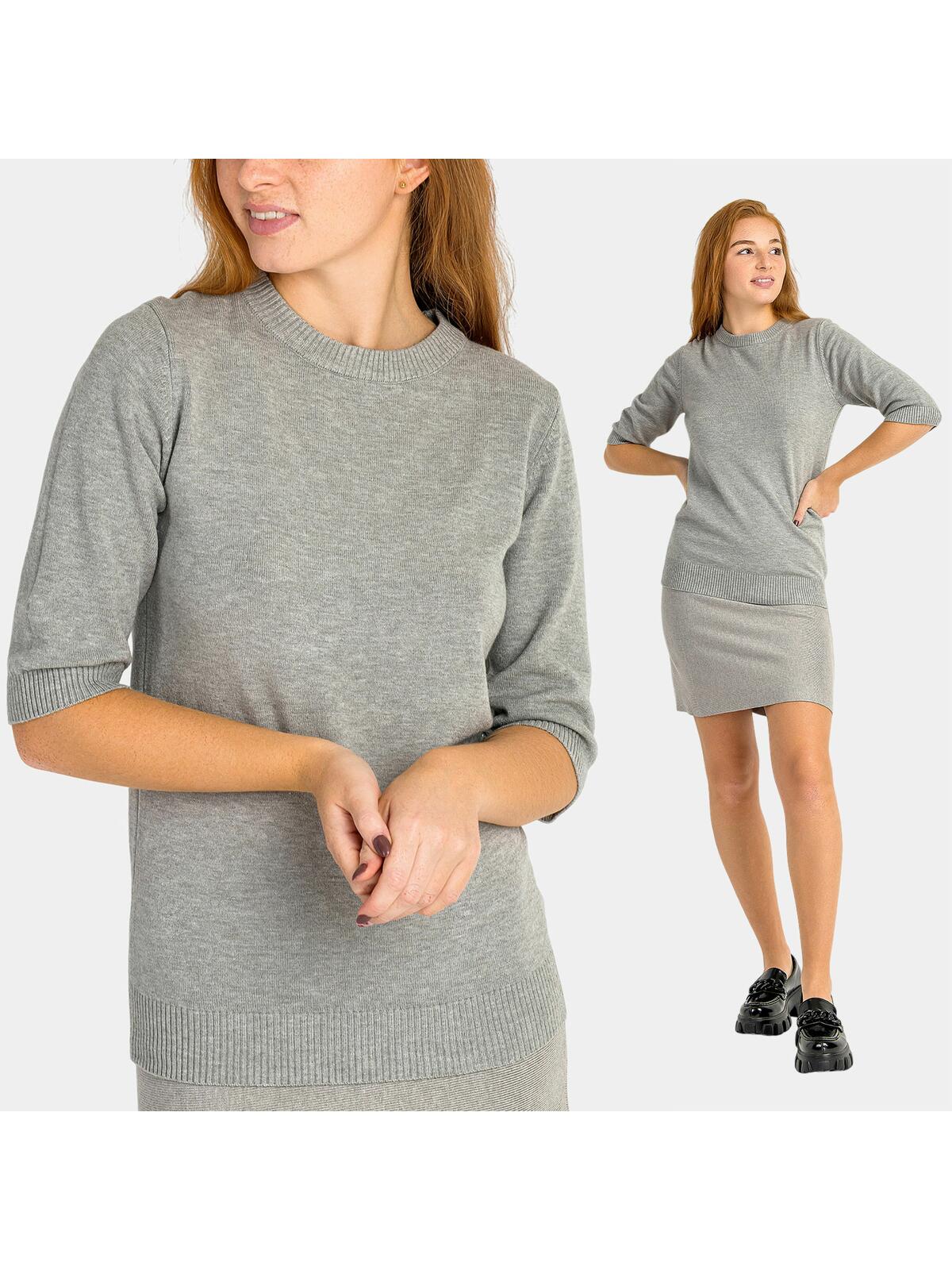 Elegancki Sweter Basic w Kolorze Popielatym 🌟