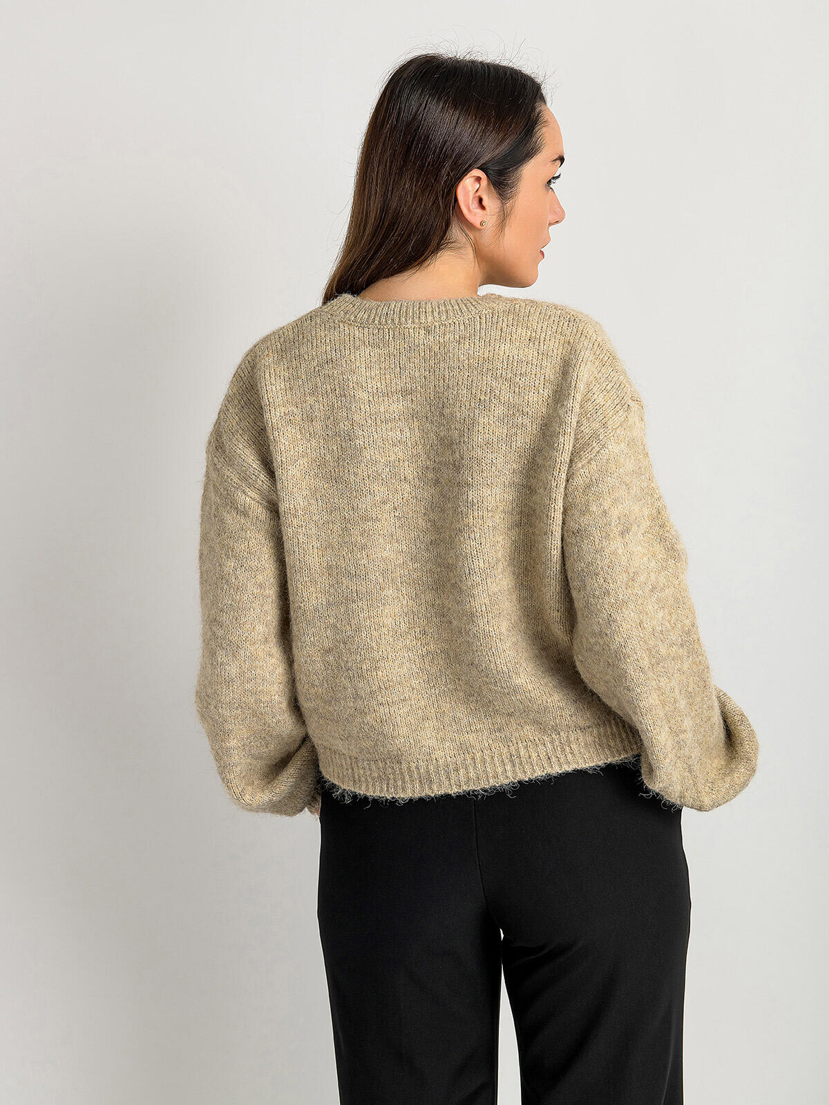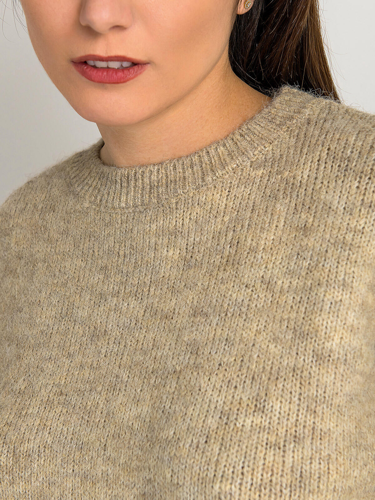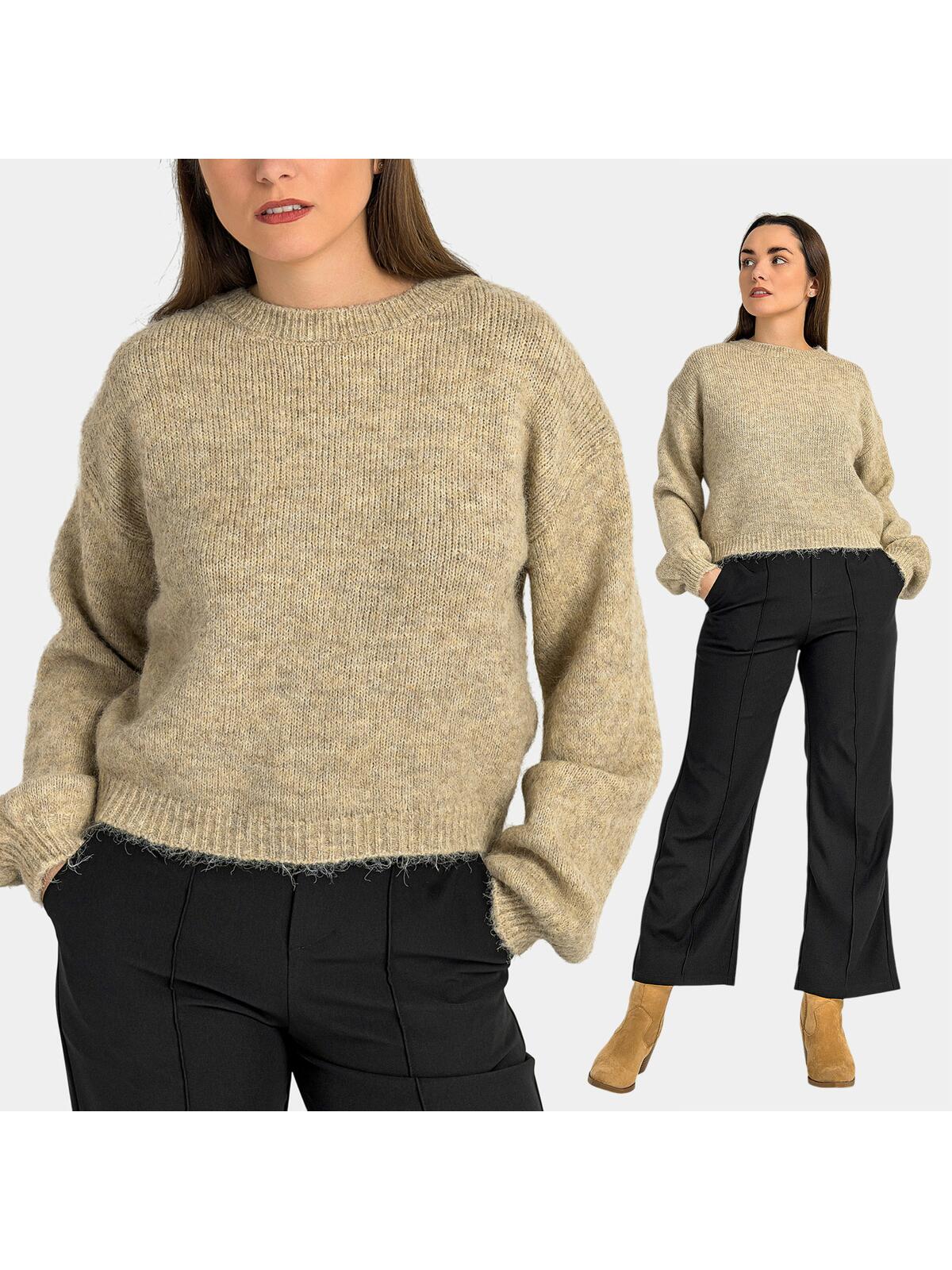 Przedstawiamy damski sweter w kolorze beżowym, który połączy w sobie styl i wygodę! Jego prosty krój idealnie wpisuje się w najnowsze trendy dodając mu elegancji. Wykonany z dzianiny z domieszką wełny, zapewnia komfort noszenia przez cały dzień. Luźny fason świetnie sprawdzi się w codziennych stylizacjach, a długie rękawy zakończone ściągaczami w szeroki prążek dodają całości modnego stylu. 🌟