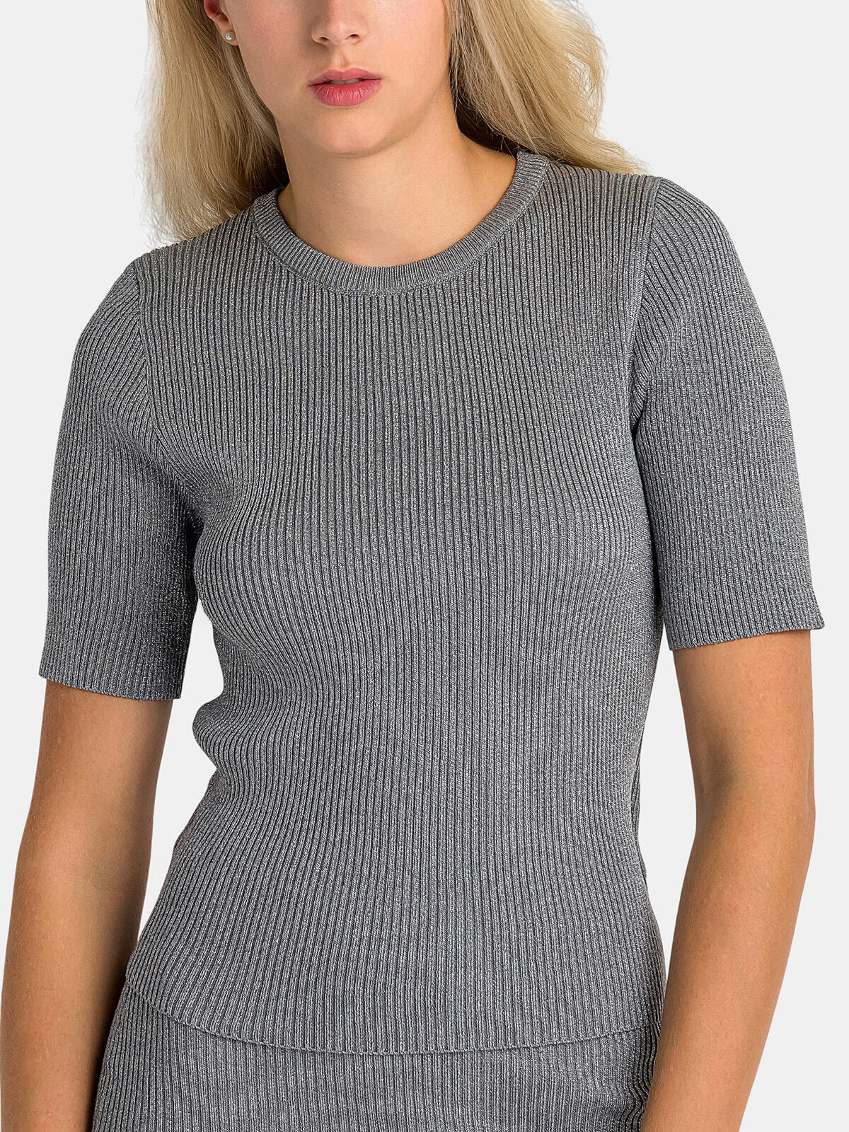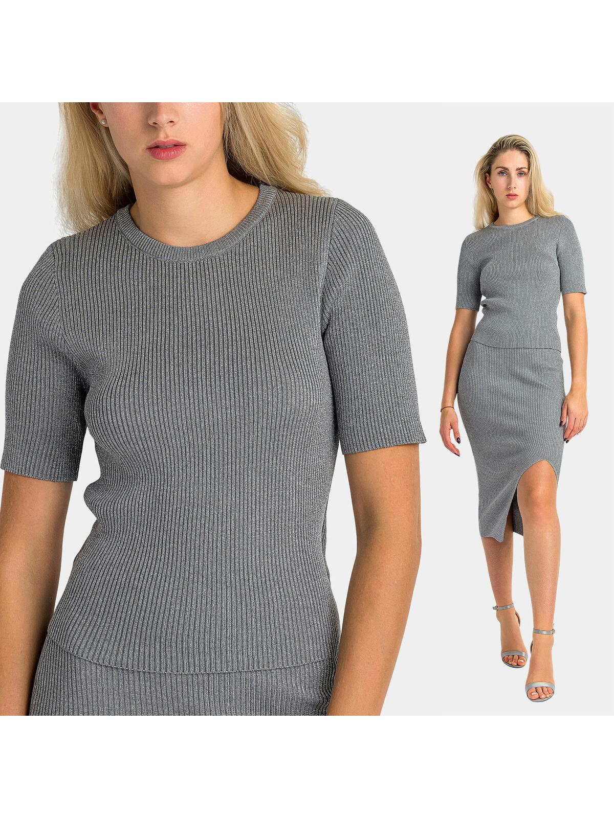 Odkryj urok naszego szarego swetra, który łączy w sobie modny styl i komfort noszenia! Wykonany z wysokiej jakości bawełny, ten sweter z błyszczącą nitką to doskonały wybór na każdą okazję. Jego prążkowany materiał pięknie podkreśla sylwetkę, a okrągły dekolt dodaje elegancji. Krótki rękaw pozwoli Ci na swobodne poruszanie się, a jednocześnie sprawi, że sweter idealnie komponuje się z długimi spódnicami. Rób wrażenie, gdziekolwiek się pojawisz! 💖✨