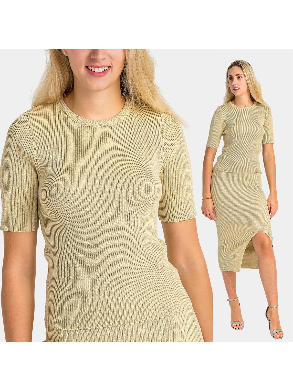 Odkryj urok naszego beżowego swetra, który łączy w sobie modny styl i komfort noszenia! Wykonany z wysokiej jakości bawełny, ten sweter z błyszczącą nitką to doskonały wybór na każdą okazję. Jego prążkowany materiał pięknie podkreśla sylwetkę, a okrągły dekolt dodaje elegancji. Krótki rękaw pozwoli Ci na swobodne poruszanie się, a jednocześnie sprawi, że sweter idealnie komponuje się z długimi spódnicami. Rób wrażenie, gdziekolwiek się pojawisz! 💖✨