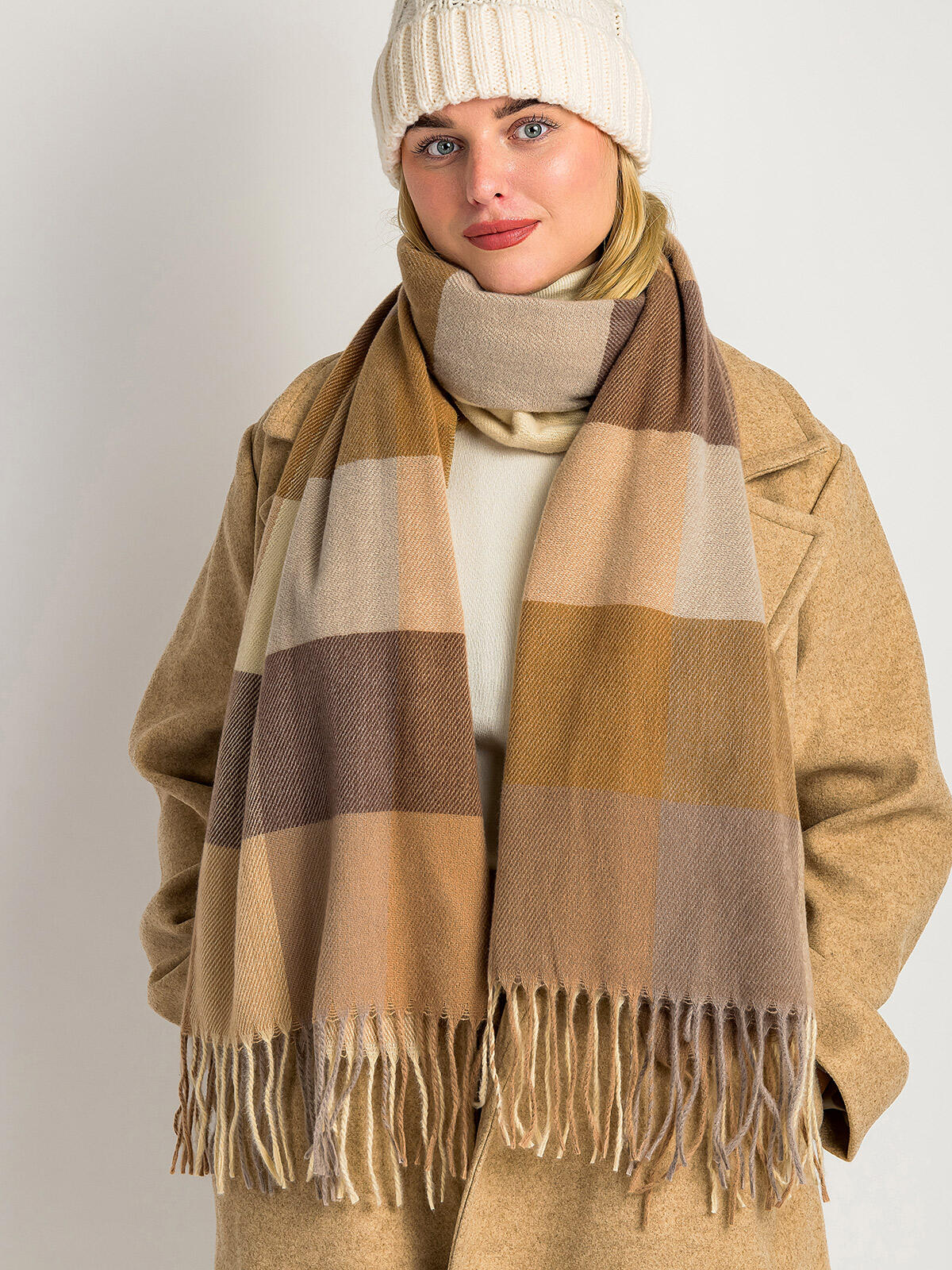 Odkryj nasz wyjątkowy szalik w kratę, który połączy styl z funkcjonalnością! W kolorze brązowym, wykonany z miękkiego, ciepłego materiału, doskonale chroni przed zimnym wiatrem. Dzięki swojej długości i frędzlom, ten szalik nie tylko ogrzewa, ale także dodaje charakteru każdej stylizacji! ✨