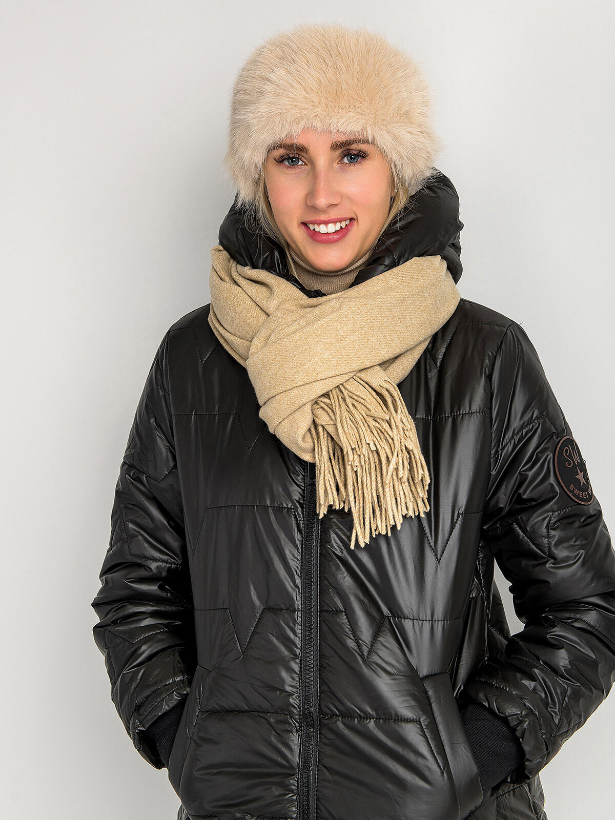 Poszukujesz dodatku, który nie tylko doda Ci stylu, ale również chroni przed zimnym wiatrem? Nasz szalik z domieszką bawełny w kolorze beżowym to doskonałe połączenie elegancji i funkcjonalności! Jego ciepły materiał otuli Cię komfortem, a zakończone ozdobnymi frędzlami detale wprowadzą do Twojej stylizacji odrobinę finezji. 🌟 Wygodny i uniwersalny, sprawdzi się zarówno w miejskich stylizacjach, jak i podczas zimowych spacerów. Nie przegap okazji i dodaj go do swojej kolekcji na ten sezon! ☔️